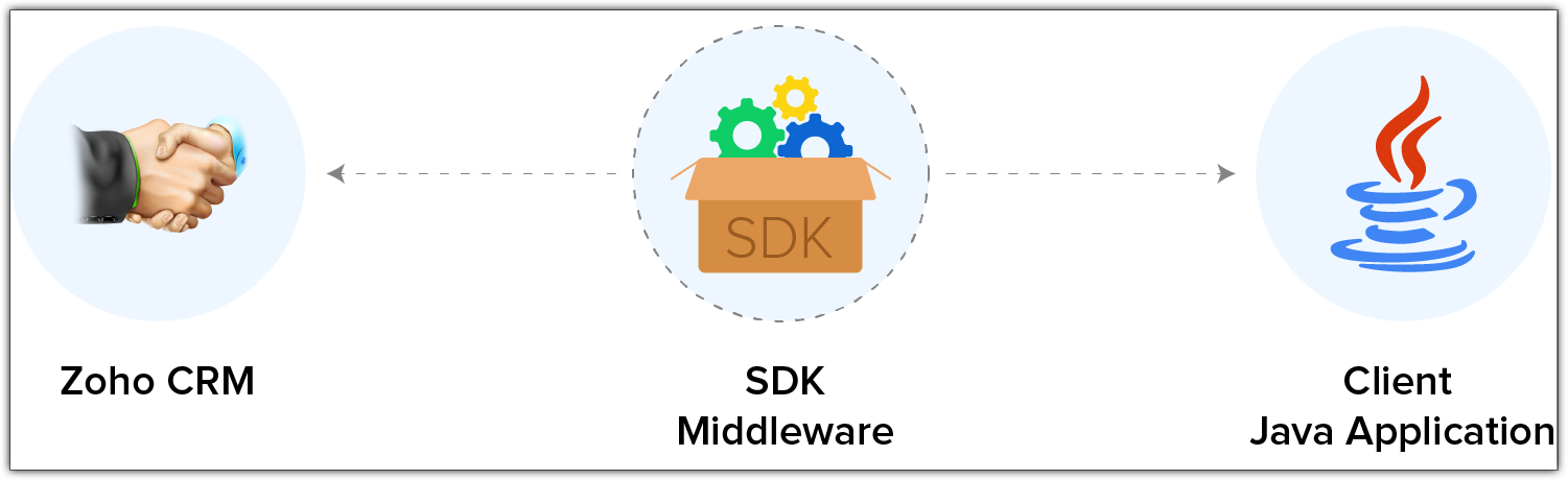 A sample of how an SDK acts a middle ware or interface between Zoho CRM and a client java application.