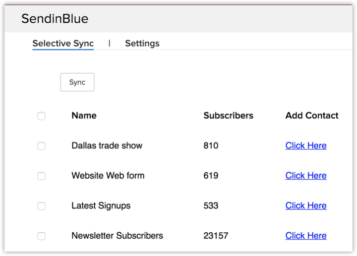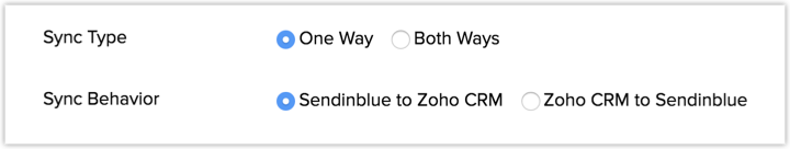 One-way sync brings SendinBlue contacts into your Zoho CRM modules or vice versa, but not both.Both-ways sync simultaneously moves CRM data into SendinBlue and SendinBlue data into CRM.