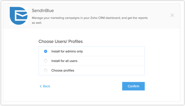 - Choose profiles - The extension will be installed in CRM for manually chosen users. Choose this option, click Confirm, then select the desired profiles.