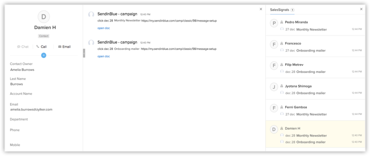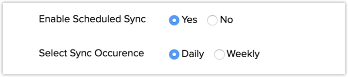 SendinBlue Campaigns are synced into the Campaigns module in Zoho CRM and CRM contacts are moved into a SendinBlue list called Zoho CRM contacts. - You can also enable Scheduled Sync, which synchronizes your data on a daily or a weekly interval.